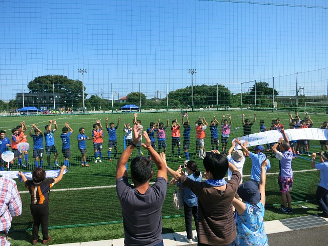 勝利が欲しいエリースは、前半からボールを早いタイミングで前線へ運ぶサッカーを展開。飯塚が積極的に競ってターゲットの役割を果たし、ストライカーの山下がそれに絡んでいく形を作る。粘り強く攻撃を続ける中で迎えた25分、PA内での空中戦でボールを奪った山下がDFのマークを巧みなキープで振り切り、シュートをねじ込んで0-1。エリースにとって逆転優勝を大きく引き寄せる先制点が生まれる。劣勢に立たされた猛蹴も縦に早いサッカーを展開しようとするが、チャンスを得られないまま前半終了。後半に入ると前半とは真逆の展開となった。猛蹴は鷲尾を投入して攻撃を強化し、エリースはカウンターを狙う。当初は中盤での奪い合いでも勝つことができていたエリースだが、暑さもあって消耗戦の様相を呈すると、少しずつエリースにも疲れが見え始めた。69分、猛蹴の波状攻撃に対し、エリースのDFがPA内でハンド。直後に斎藤(直)がこぼれ球をゴールに押し込み、当初はこのゴールが認められたが、エリースの選手たちの猛抗議によってゴールが取り消され、PKに変更。エリースはハンドに至る過程で相手にファウルがあった旨の抗議を続けるが、修正判定は変わらず、猛蹴のPKを鳥毛が冷静に決めて1-1の同点。ここからは再び猛蹴が主導権を握った。エリースにとっては精神的動揺の大きな一連のPKだったが、選手たちは集中を切らすことなく、猛蹴の攻撃に対処。最後まで緊迫した展開が続き、遂に1-1のままタイムアップ。その瞬間、猛蹴の関東2部優勝が決定した。他会場で早稲田ユナイテッドがドローに終わったため、2位を確保したエリースも1部昇格を決めることができたものの、逆転優勝を実現することは出来ず。歓喜に湧く猛蹴と、一様に悔しい表情を浮かべるエリース。同じ昇格組には見えない対照的な表情を浮かべながら、両チームがピッチを後にした。