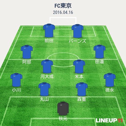 前節、柏とのアウェイゲームを落として9位に後退した東京。今節は川崎を味スタに迎えての「多摩川クラシコ」となった。川崎は開幕から未だ負け無しの首位を快走中。東京にとっては非常に難しい相手となる。メンバー構成は森重が出場停止から戻り、バーンズがリーグ戦初スタメン。両サイドに田邉と阿部を起用し、河野・羽生・東はベンチにも入らず。味スタには多くの川崎サポーターが詰めかけたにも関わらず、やや寂しい入り。