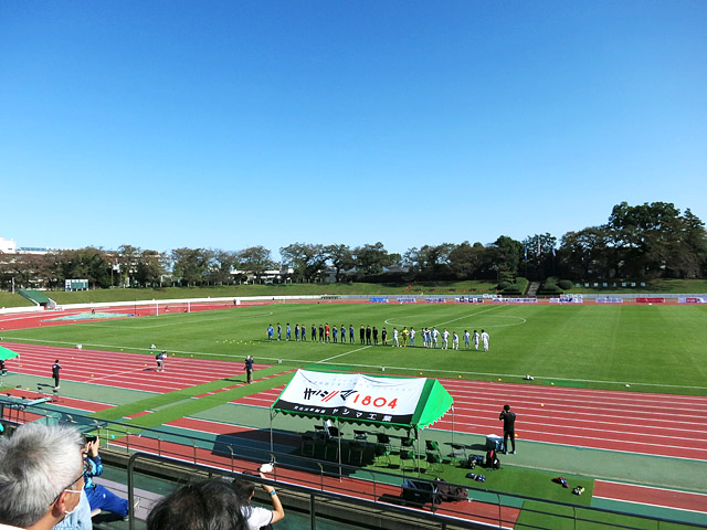 この週末、当初はもちろん東京の試合を観に行く心づもりでいたが、アウェイ・川崎戦のビジター席チケットは予想どおりの「瞬殺」で買えず。代わりといっては失礼になるが、今季初めてJFLを観に行くことにした。武蔵野陸上競技場での武蔵野×マルヤスという対戦カードである。なんだかんだで年1回の頻度で訪れている武蔵野陸上も、今年はさすがに無理かなあ・・・と思っていたが、幸いなことにタイミングが合った。今季のJFLは新型コロナウイルスの影響で第15節までの前半戦が全て中止となり、第16節から第30節のみの1回戦制。全15試合の短期決戦で優勝を争うことになっている。ホームの東京武蔵野シティFCは現在12位。中位が混戦になっているとはいえ、昨季4位と奮闘したことを考えれば、もうひとつ勢いが欲しい。今週は水曜日に天皇杯の筑波大学戦で120分間の延長戦を戦ったばかりで(2-3で敗退)、多少疲労が残っているかもしれない。今年8月にJリーグ百年構想クラブから脱退してJリーグ参入を断念した経緯もあり、どういうモチベーションで戦っているのかも少し気になる。対戦相手のFCマルヤス岡崎は、現在勝点「8」の15位。多くのJリーグ経験者が在籍しているにも関わらず、下から2番目という順位に沈んでいるのはちょっと良く分からない。今季はJリーグと同様に降格制度が無いため、残留争いというものは存在しないが、本来ならば極めて降格の危険性が高いポジションだ。このまま下位に甘んじるのは不本意だろう。マルヤスも水曜日に天皇杯でHondaFCと戦っており(0-1で敗退)、中2日という条件は武蔵野と同じだ。