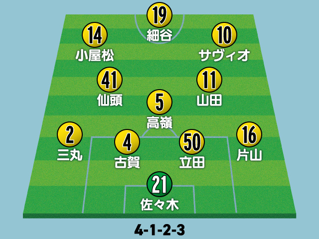 | 14 | 小屋松 知哉 | FW | 9 | ディエゴ オリヴェイラ |