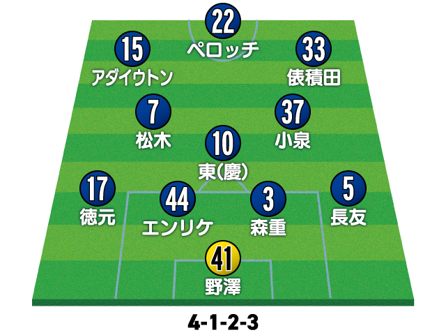 | MF | 10 | 東 慶悟 | MF | 33 | 三沢 直人 |