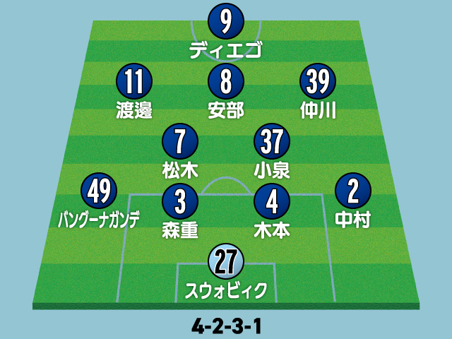 | GK | 27 | ヤクブ スウォビィク | GK | 21 | 阿部 航斗 |